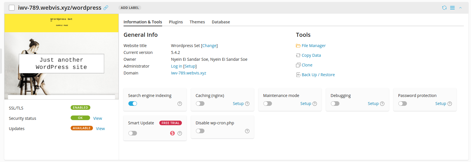 By default, on cloned WordPress installations, the Search engine indexing option is turned off. You can turn this option on by enabling toggle checkbox for Search engine indexing.