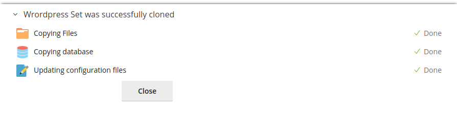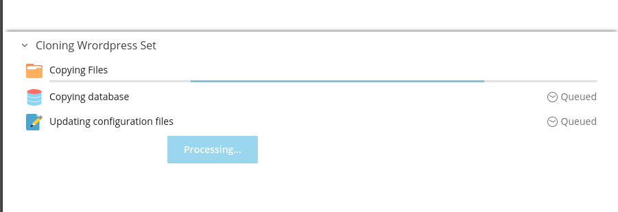The process is automatic and fast. WordPress Toolkit copies files and the database to the new domain and configures it all to work together.