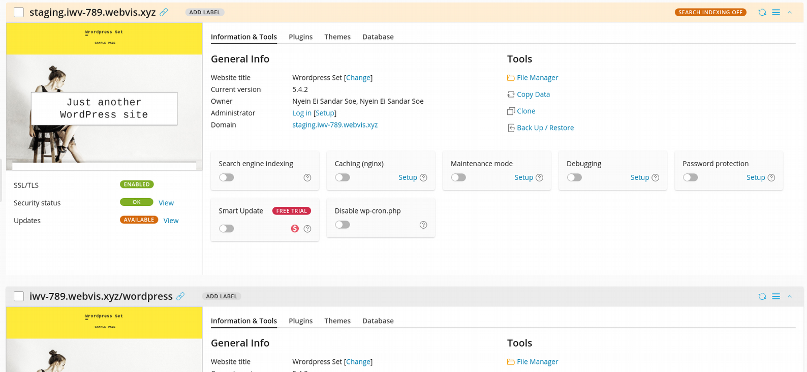 To create a staging environment, use the single-click cloning function provided by the WordPress Toolkit.